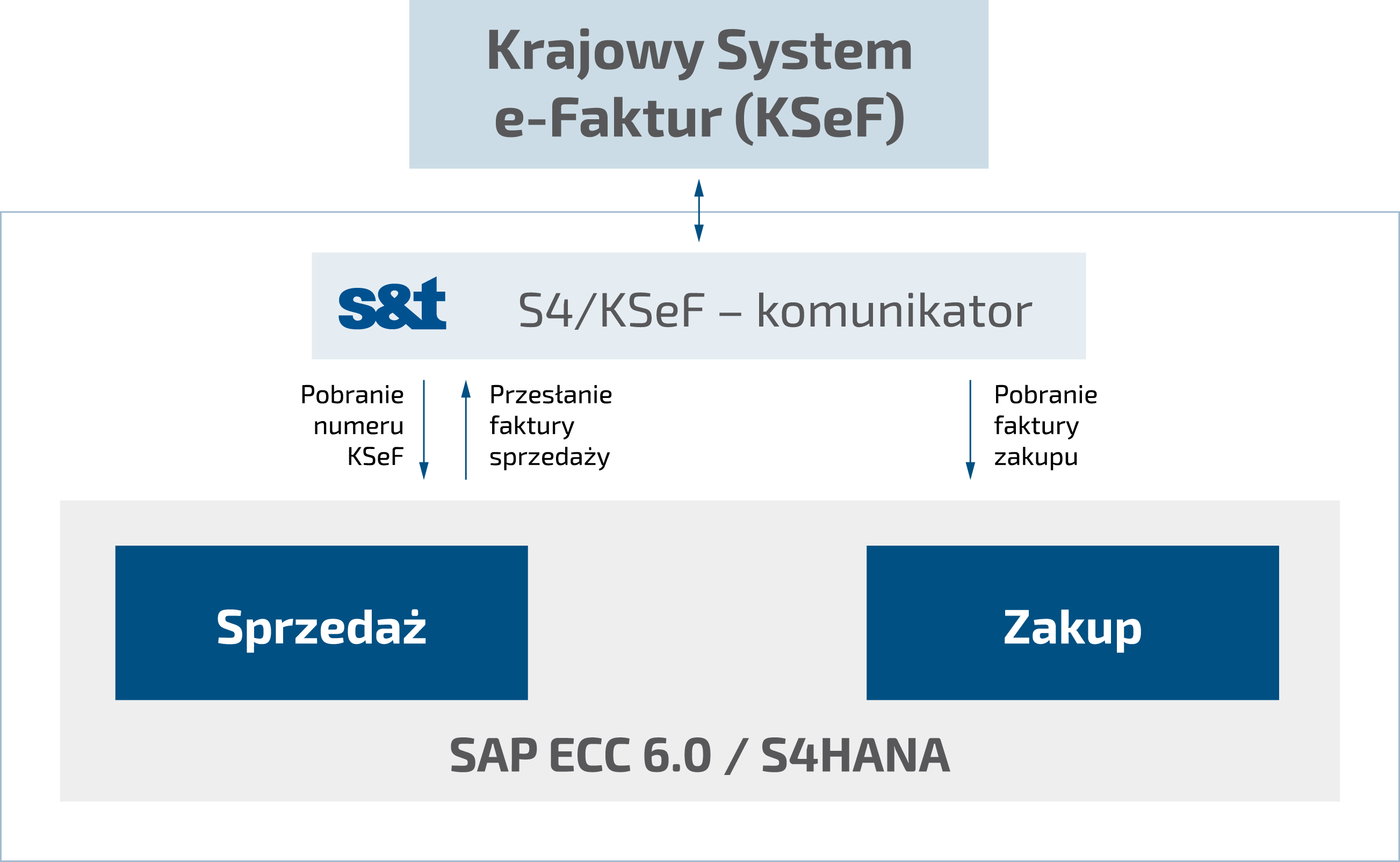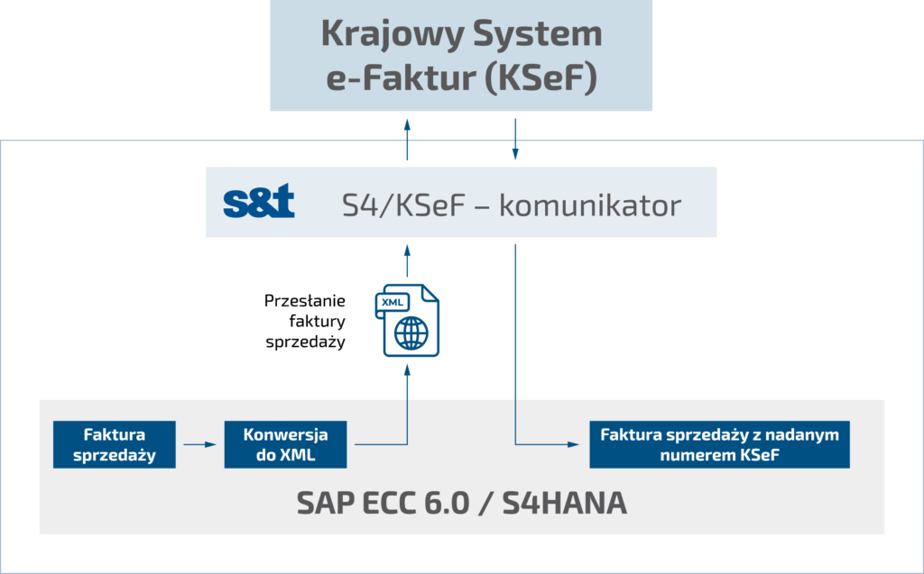 S&T oferuje dedykowane rozwiązanie S4/KSeF (S&T for KSeF) do obsługi faktur elektronicznych zgodnie ze standardem KSeF, umożliwiające integrację centralnego systemu KSeF ze strukturami SAP. Jego głównym zadaniem jest pełna obsługa z poziomu systemu SAP wszystkich aktywności związanych z Krajowym Systemem e-Faktur. S&T zapewnia przeprowadzenie przedsiębiorstwa przez proces dostosowania oprogramowania SAP do obsługi faktur w formie elektronicznej oraz oferuje pomoc w wyborze najbardziej optymalnych scenariuszy wdrożenia w zakresie połączenia systemu SAP z Krajowym Systemem e-Faktur.