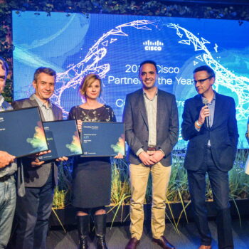 W dniu 28 października odbyła się coroczna konferencja partnerska Cisco, podczas której S&T otrzymało tytuł partnera roku w sektorze publicznym. Zostaliśmy nagrodzeni za innowacyjność, postawę liderską i stosowanie najlepszych praktyk jako partner biznesowy Cisco nie tylko w Polsce, ale i w całym makroregionie EMEAR. W imieniu zespołu S&T statuetkę odebrał Prezes Zarządu Piotr Staszczak. Nagrodę wręczył Przemysław Kania Managing Director i Agnieszka Jabłońska Partner Sales Leader.