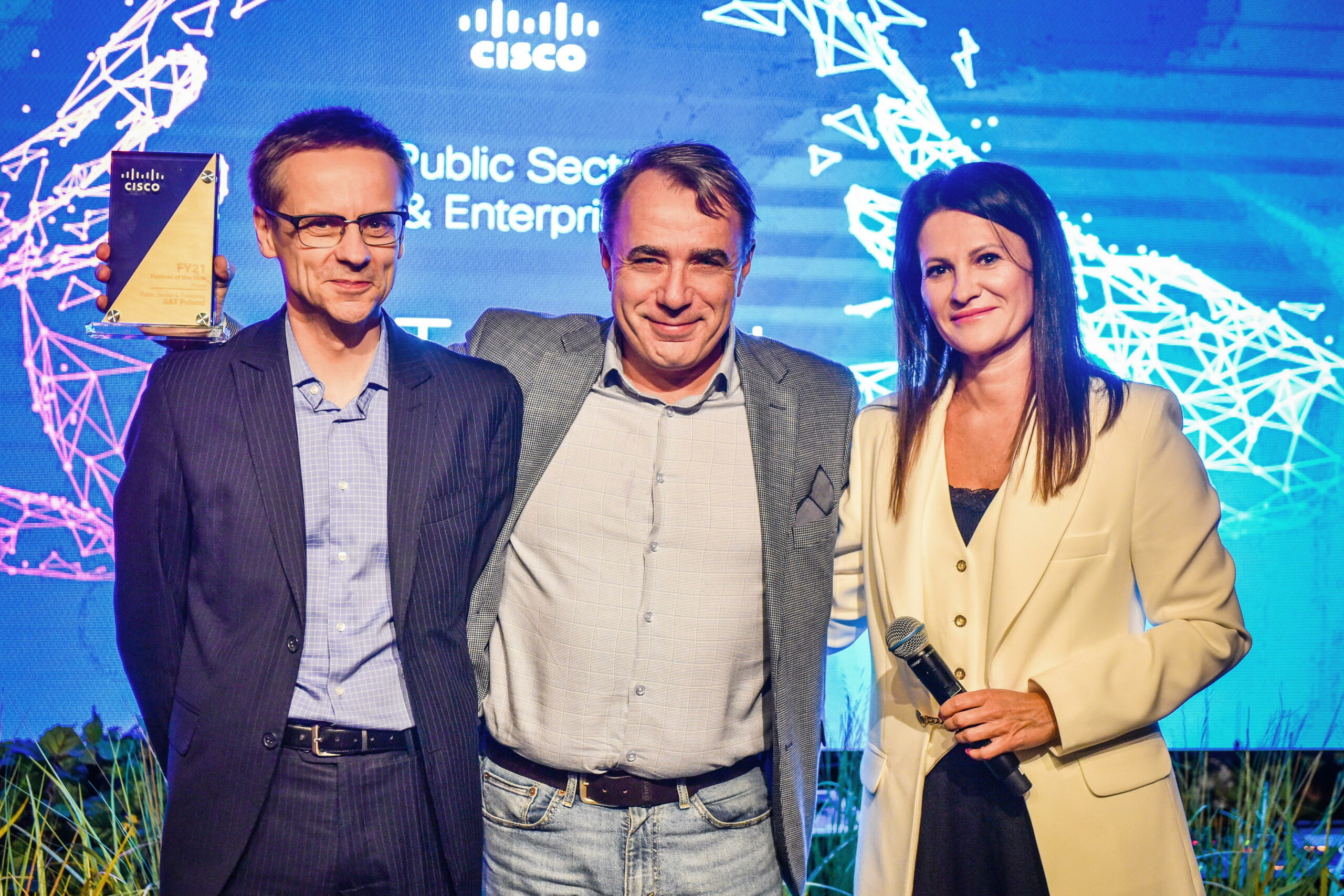 W dniu 28 października odbyła się coroczna konferencja partnerska Cisco, podczas której S&T otrzymało tytuł partnera roku w sektorze publicznym. Zostaliśmy nagrodzeni za innowacyjność, postawę liderską i stosowanie najlepszych praktyk jako partner biznesowy Cisco nie tylko w Polsce, ale i w całym makroregionie EMEAR. W imieniu zespołu S&T statuetkę odebrał Prezes Zarządu Piotr Staszczak. Nagrodę wręczył Przemysław Kania Managing Director i Agnieszka Jabłońska Partner Sales Leader.