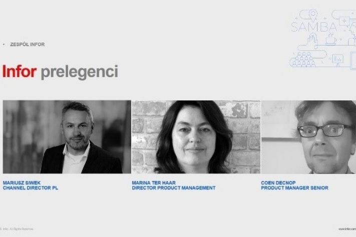 Otwierając SAMBĘ tym razem nie przecinaliśmy wstęgi, ale – idąc z duchem czasu zdalnych spotkań – na wizji przekazywaliśmy sobie konferencyjny identyfikator. Przesyłkę przed kamerami nadał Mariusz Siwek jako dyrektor firmy Infor w naszym rejonie Europy, kopertę z identyfikatorem przechwycił Włodek Miśta jako dyrektor segmentu Infor w S&T, a jej finalnym odbiorcą był Jacek Lisewski jako reprezentant pionu zarządzania projektami w S&T. Cała konferencja kręciła się wokół zarządzania projektami: nagradzaliśmy za najciekawsze projekty w ostatnim czasie, mówiliśmy o przyszłych projektach i przez dwie godziny razem z ekspertami dyskutowaliśmy o tym, jak dobrze prowadzić projekty (ale o tym za chwilę…). O swoich projektach i planach na przyszłość, a także o dalszym rozwoju Infor LN, opowiadali też reprezentanci działu Product Development firmy Infor: Coen Decnop oraz Marina ter Haar łączyli się z nami z Holandii.
