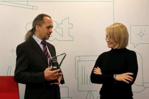 Oprócz nagród dla pracowników wręczaliśmy też nagrody dla firm będących użytkownikami Infor LN/BAAN. Nagrodę za długi czas współpracy z S&T (aż 20 lat!) otrzymała Grupa Amcor – odebrał ją pan Jarosław Świtecki, Kierownik IT. Z kolei wśród nagrodzonych za najciekawsze projekty ukończone w ostatnim czasie znaleźli się: Węglokoks SA (nagrodę odbierał pan Łukasz Stajer, Dyrektor ds. IT Grupy Kapitałowej), Metro Warszawskie Sp. z o.o. (nagrodę odbierał pan Piotr Borowski, Zastępca Dyrektora Biura Informatyki) oraz Luminator – LTG Poland Sp. z o.o. (nagrodę odbierał zespół projektowy: pan Piotr Hampel jako Kierownik Projektu oraz panie Katarzyna Cyrul i Marta Bukowska jako Kierownictwo Finansów).